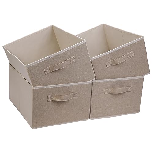 (Cream, 4) Collapsible Storage Boxes Non Woven Kids Toys