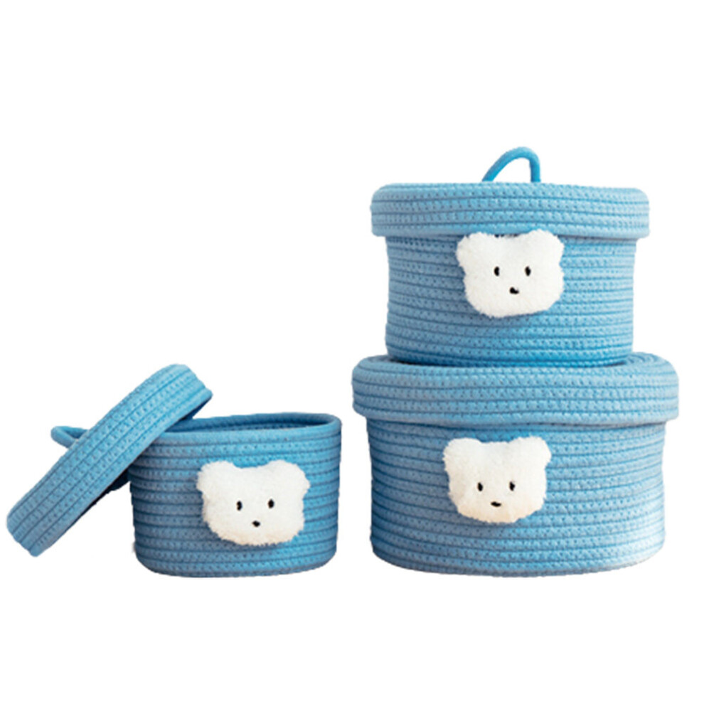 3Pcs Storage Baskets with Lid Cotton String Baskets for Organizing Baby Nursery Storage Boxes Kid's Toys Gifts(Blue)
