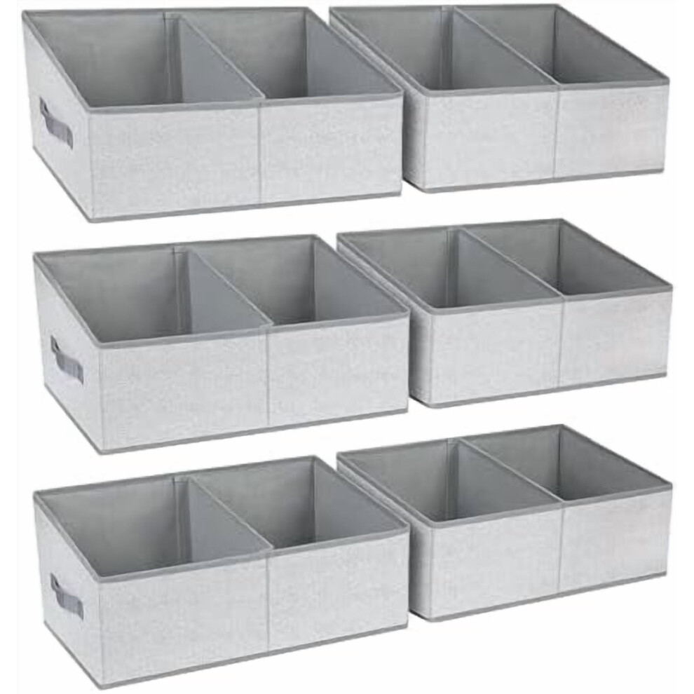 6-Pack Foldable Fabric Shelf Organizer Bins with Handles & Dividers, Trapezoid Storage Boxes for Clothes, Towels, Toys, Hats â Grey