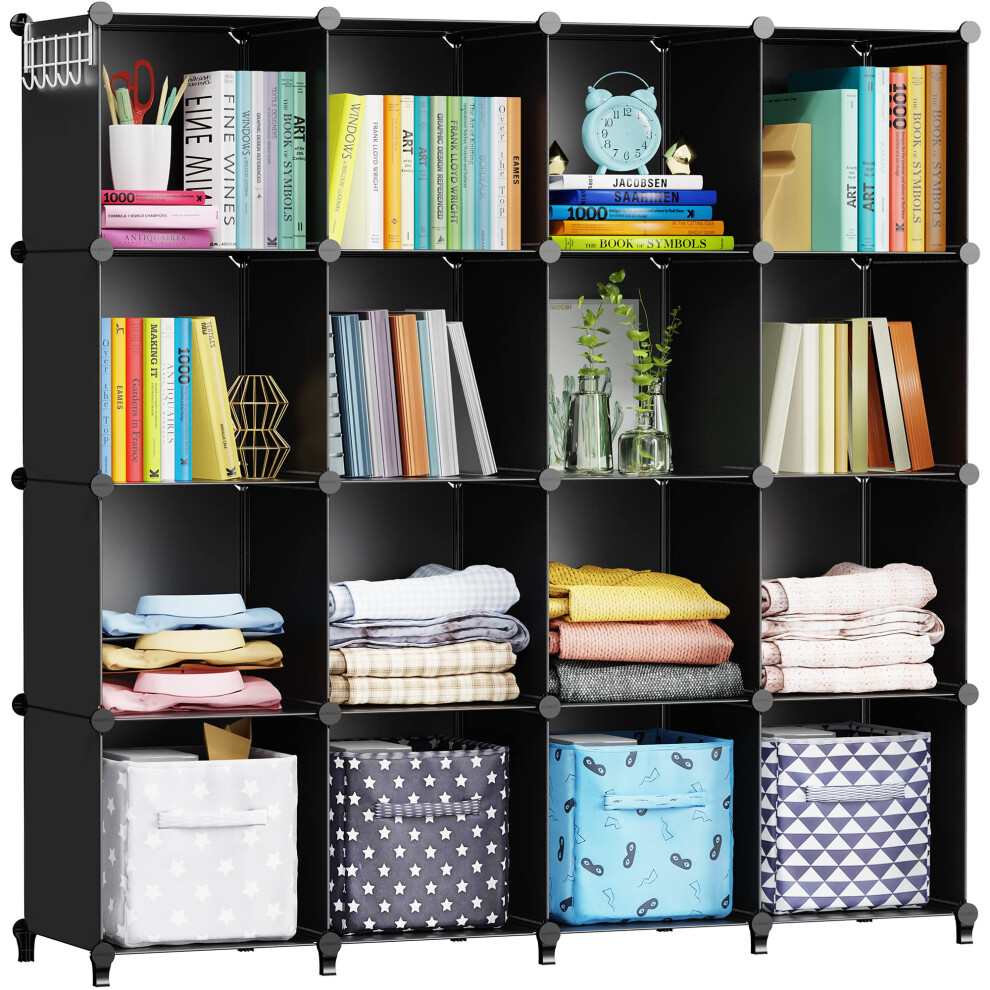 HOMIDEC Bookcase, 16 Cube Storage Unit Bookshelf, Storage Cubes Multi-Use DIY Storage Shelves for Books, Storage Boxes, Clothes, Crochet Yarn, Toys