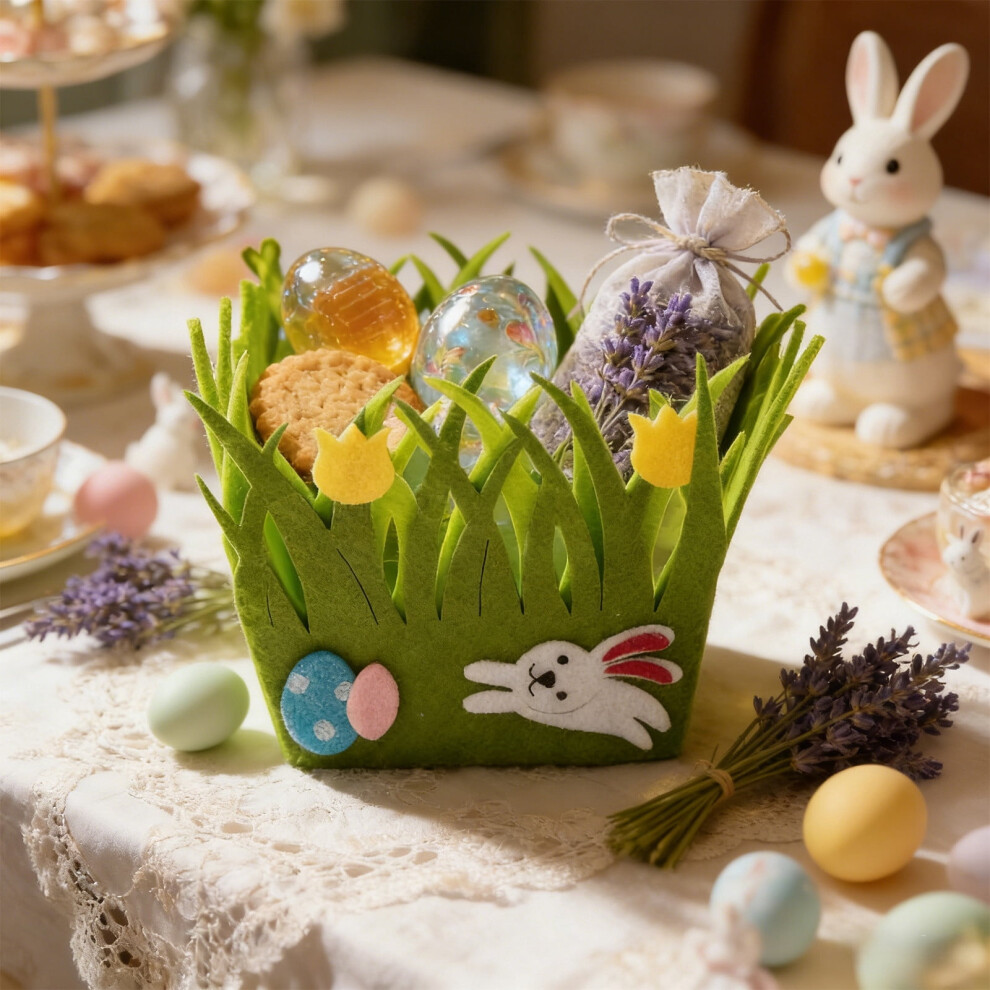 Easter Felt Baskets 4.53x5.12", Bunny Storage Boxes for Eggs, Candy, Toys â Green