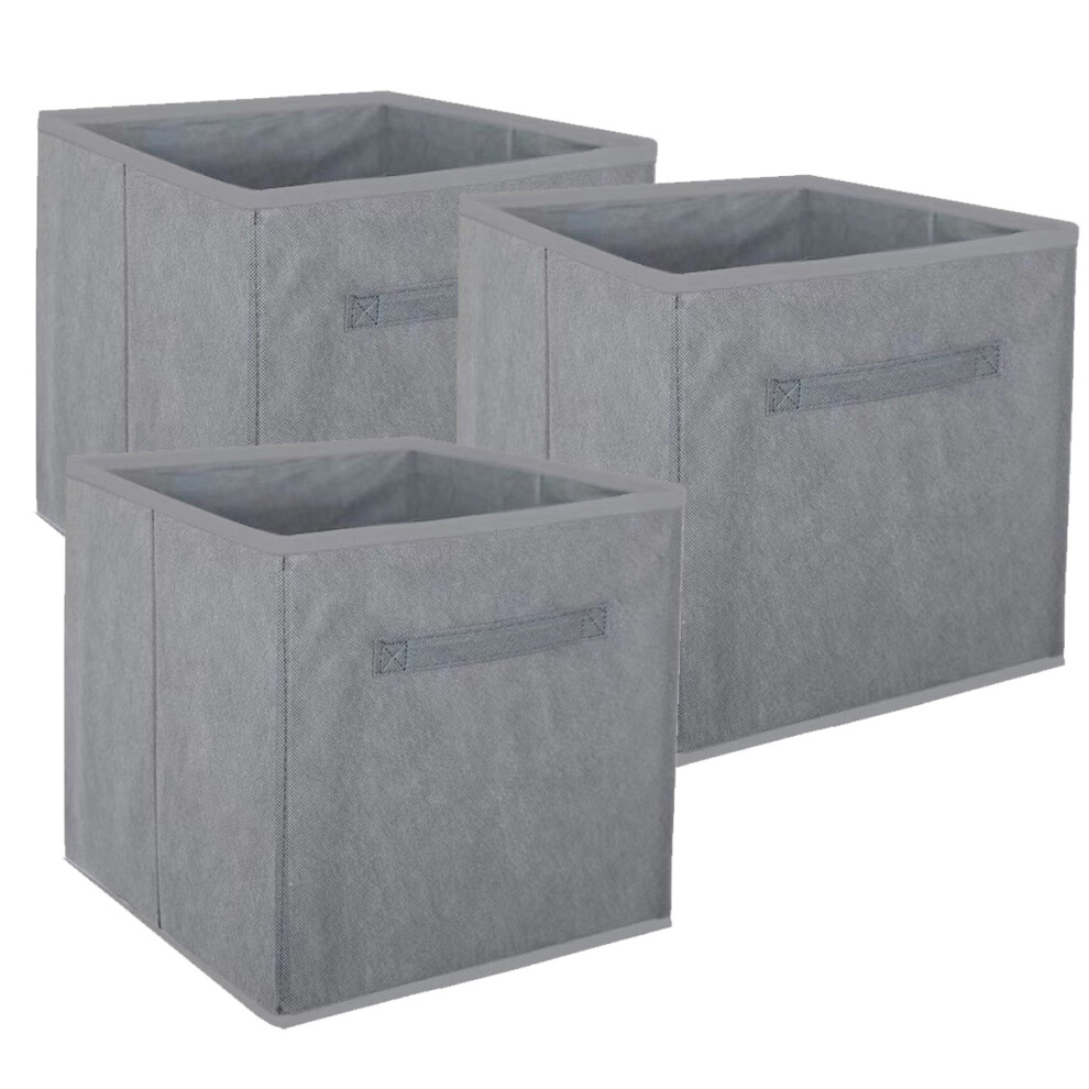 Fabric Storage Boxes, 3 pack Collapsible Storage Baskets for Shelves, 31×20×16 cm, Wardrobe Storage Organiser with Metal Frame, Foldable Cube Storage Unit Boxes for Clothes, Toys, Books,(Grey,Small)