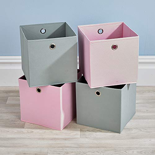 Home Source Cube Storage Boxes, Collapsible Fabric Storage Baskets, Foldable Canvas Organising Boxes, 4 Piece, 2 Pink, 2 Grey