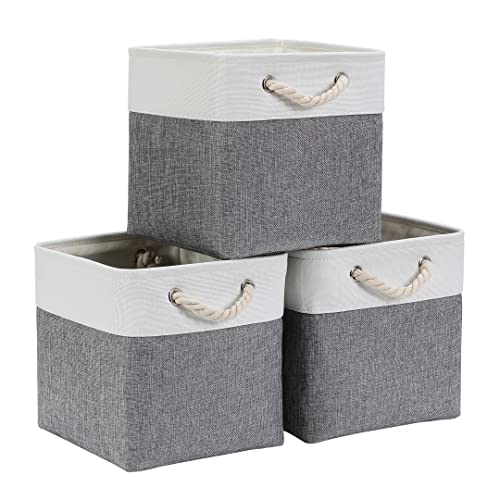 GhvyenntteS Storage Bins [3-Pack] Large Foldable Storage Baskets for Shelves, Sturdy Fabric Cube Storage Boxes with 3 Handles for Closet Nursery Cabinet Living Room (Grey, 15" x 11" x 9.6")