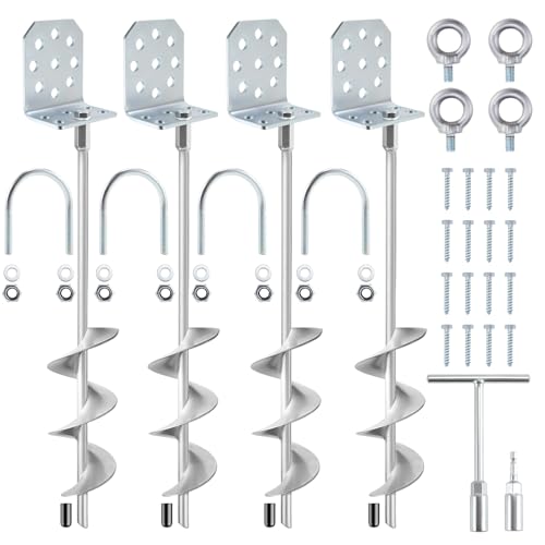 Ciyivak Swing Set Anchors 20" – 4 Pack Heavy Duty Ground Anchors Screw in with L-Brackets & Drill Adapter, Fully Welded Spiral Earth Anchor for Storage Sheds, Trampoline, Fence, Carports