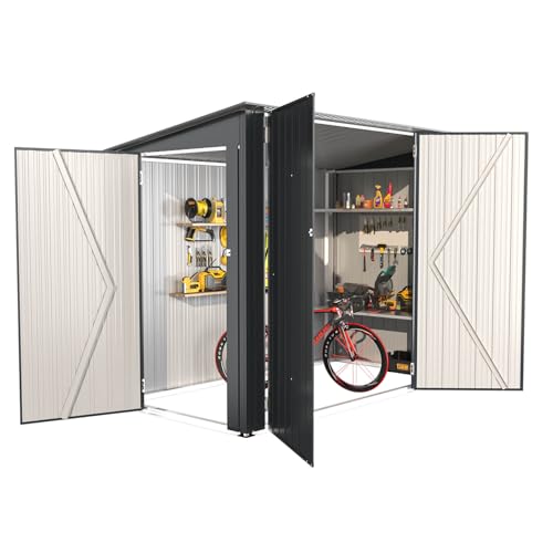 Aoxun 8x4ft Metal Garden Shed Pent Roof, Bike Sheds and Outdoor Storage 234×131×185 cm, Weatherproof Garden Storage Shed with Triple Lockable Door for Garden, Patio, Courtyard, Backyard, Black