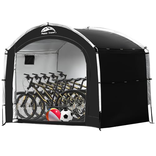 Happy Travel Bike Storage Tent Shed, Outdoor Waterproof Bicycle Covers Shelter with Window for 2/4/6/8 Bikes,Oversized Outside Portable Sheds for Lawn Mower,Garden Tools (Black)