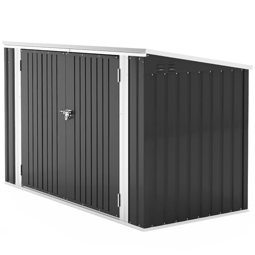 XEMQENER Bike Shed Storage Outdoor, Lockable Garden Storage Shed with Door and Sloping Roof, Waterproof Metal Galvanized Steel Sheds for Bike, Garden Tools, Garbage Bins, Black,(L176x W105x H130 cm)