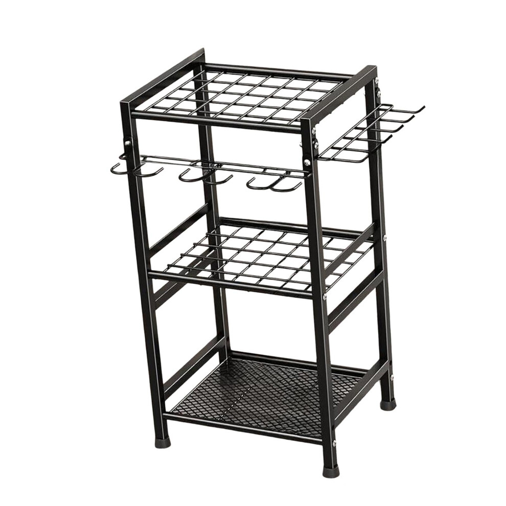 Garden tool organizer, storage shelf for garden tools with hooks, sturdy multipurpose holder, 3 levels, for sheds, gardens and