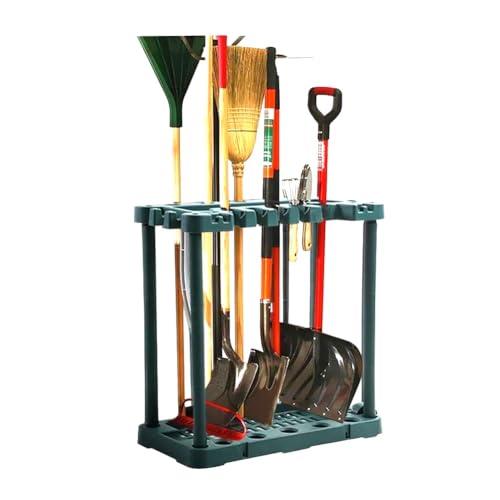 2 Tier Garden Tool Holder Heavy Duty Garden Tools Storage Multi Tool Portable Organiser Tidy with Wheels for Sheds Garages & Outdoors Freestanding Holder for Rakes Shovels Brooms 84 x 75 x 35cm GREEN