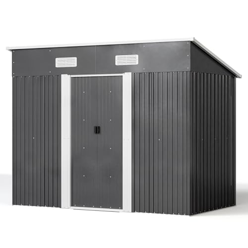 Panana Zinc Steel Metal Garden Sheds Garden Storage Outdoor Metal House Utility Tool Storage (4.7x8.86ft)