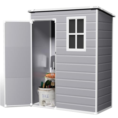 UDPATIO Outdoor Storage Shed 5x3 FT, Plastic Garden Shed for Bike, Garbage Can, Tool, Outside Sheds & Outdoor Resin Shed with Lockable Door for Backyard, Patio, Lawn, Grey & White