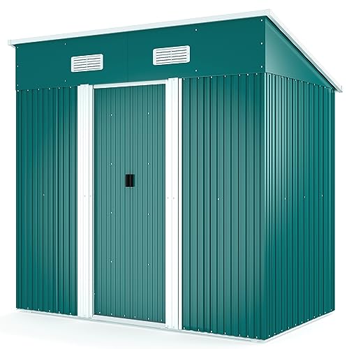 Panana Metal Garden Shed Storage Sheds Heavy Duty Outdoor FREE Base Foundation Green/Grey Color (8x4 Green)