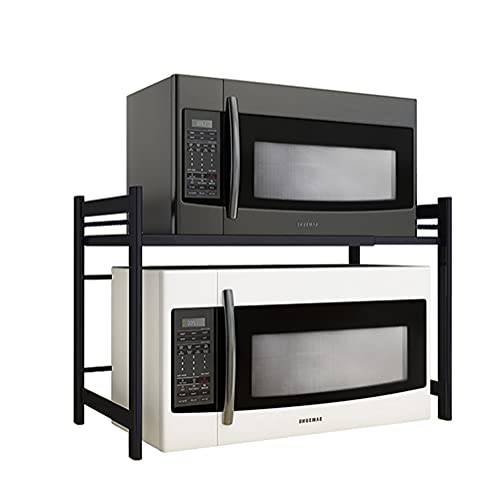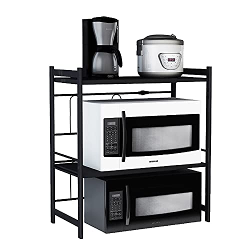 wblj Multilayer Microwave Oven Rack,Adjustable Metal Oven Storage Rack,with Hooks for Storing Kitchen Supplies or Home Items/Black / 46cm