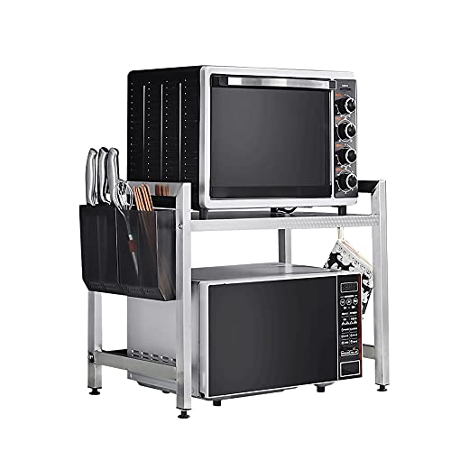 wblj Multi-Function Microwave Oven Rack,Adjustable Stainless Steel Double Oven Storage Storage Rack,with Hooks for Kitchen Bathroom/Silver / 53x36x53.5cm
