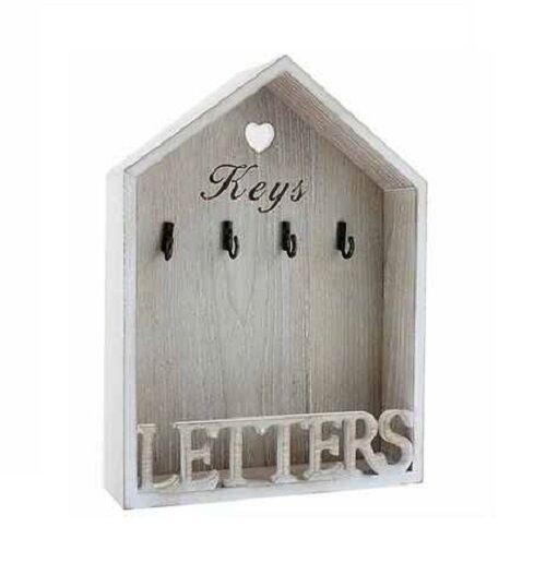 Vintage Natural Letter Rack 4 Key Holder Hooks Storage Shabby Chic Wall Mounted