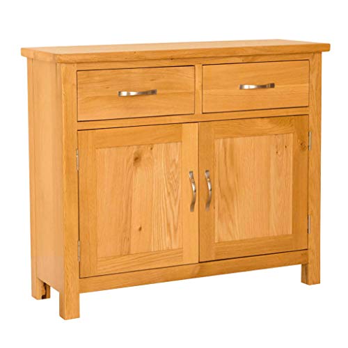 RoselandFurniture Zelah Oak Sideboard | Solid Wood Mini Cupboard with 2 Drawers | Rustic Buffet Unit with Storage for Dining Room, Living Room, Hallway, Bathroom