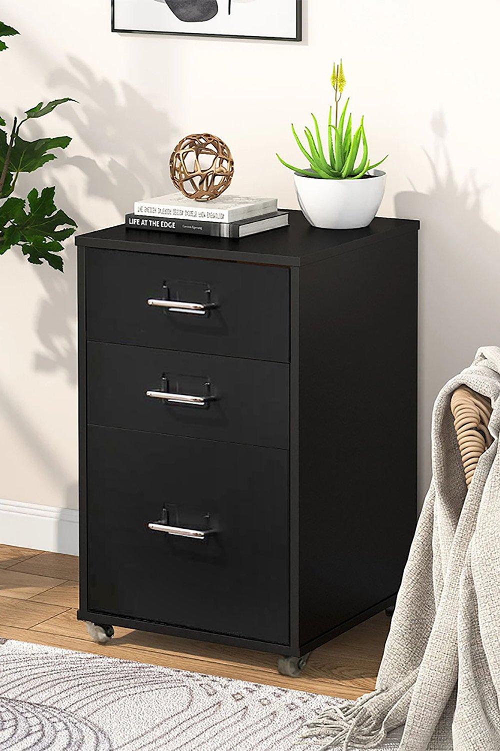 3 Drawers Vertical File Cabinet with Wheels Living Room Storage Cabinet Bedroom Black Bedside Table