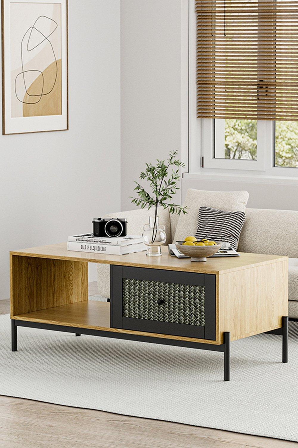 Vida Designs Panama 1 Drawer Coffee Table Storage Cabinet Living Room
