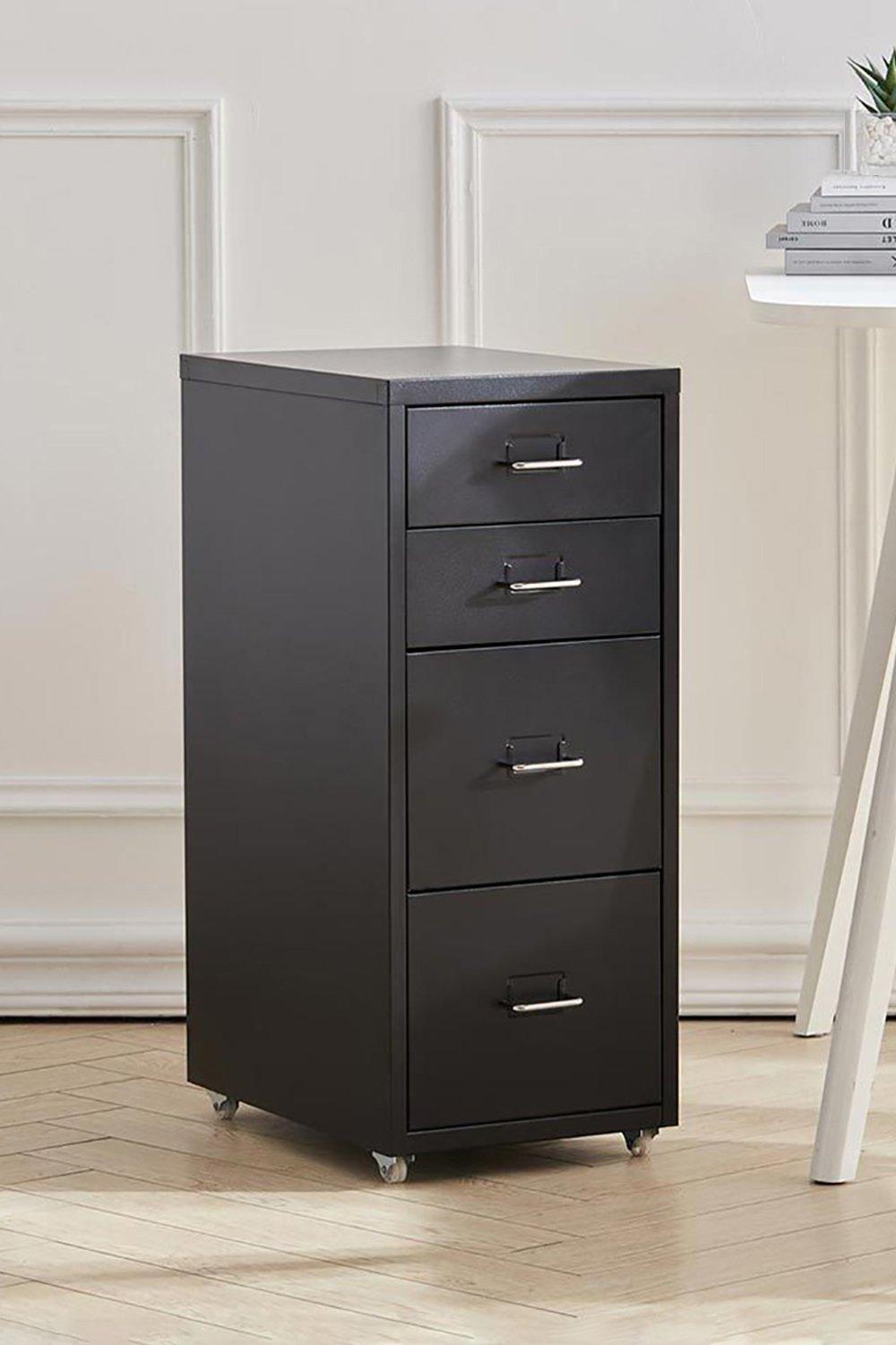 4 Drawers Vertical File Cabinet with Wheels Living Room Storage Cabinet Bedroom Black Bedside Table