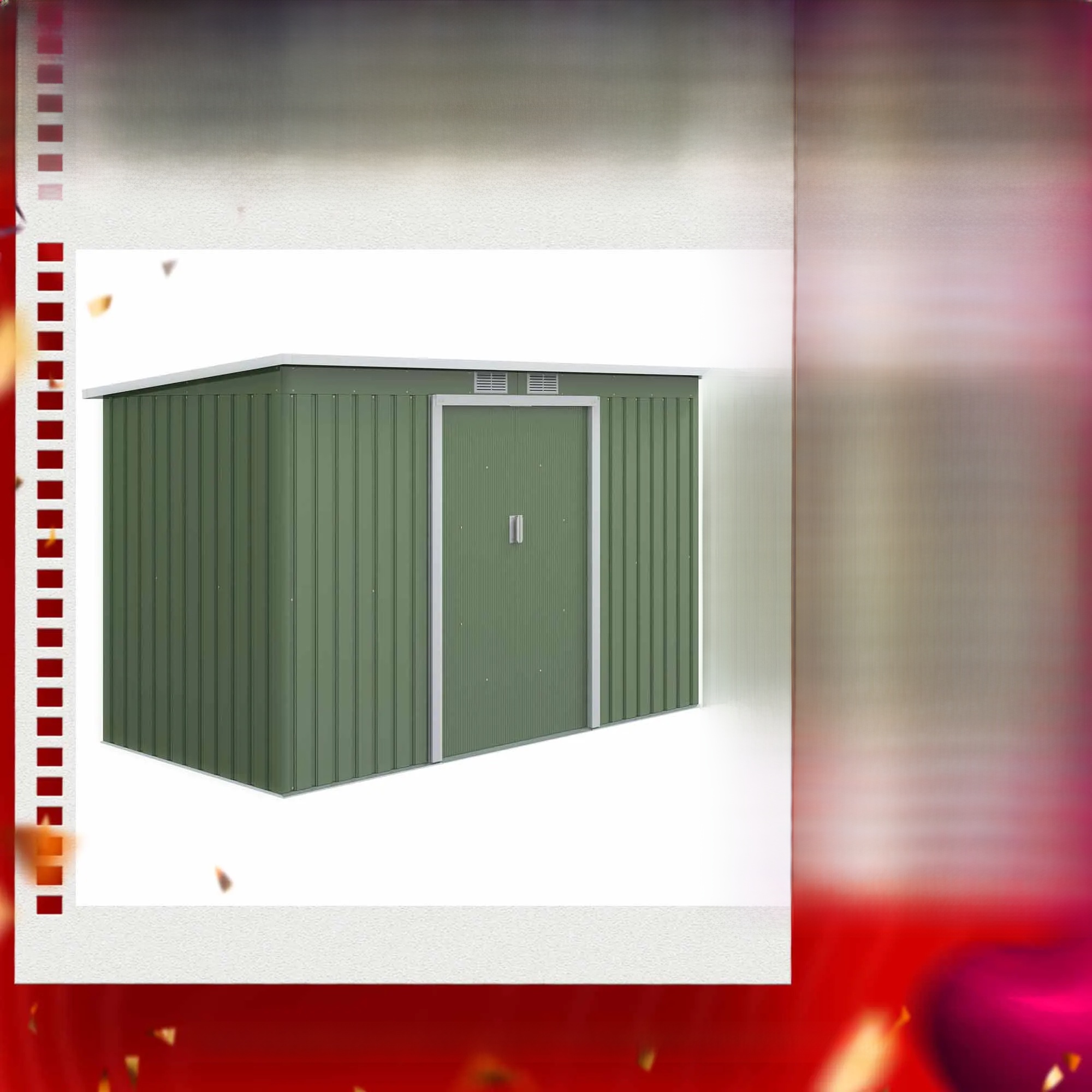 9 X 6FT Outdoor Storage Garden Shed Sliding Door Galvanised Metal