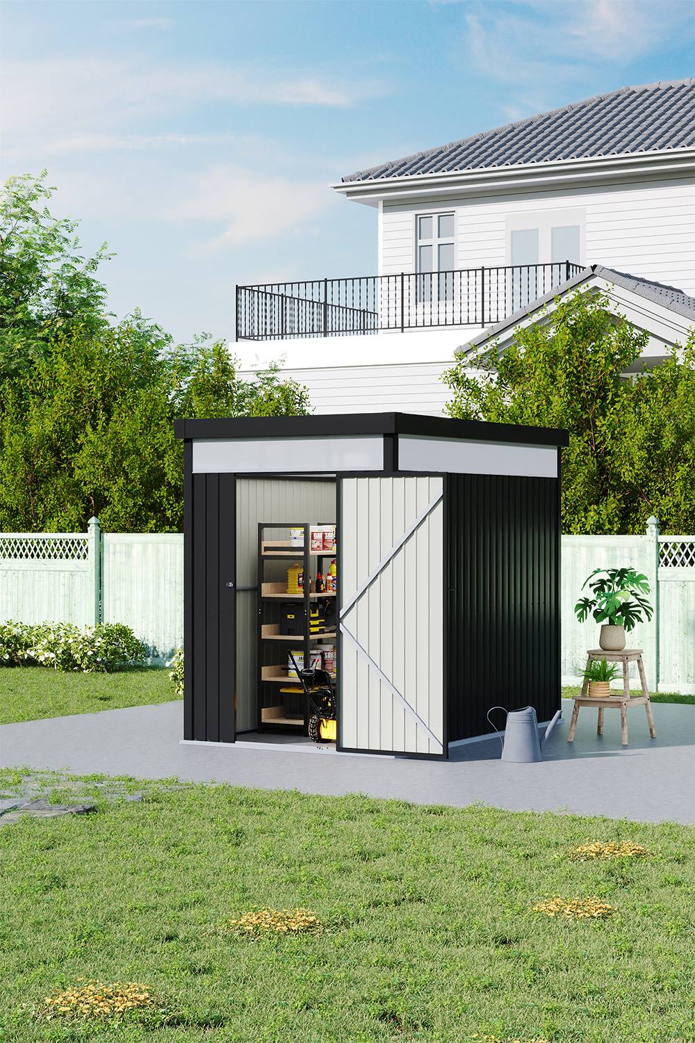 8.5 ft W x 6.4 ft D Garden Metal Storage Shed with Lockable Sliding Doors