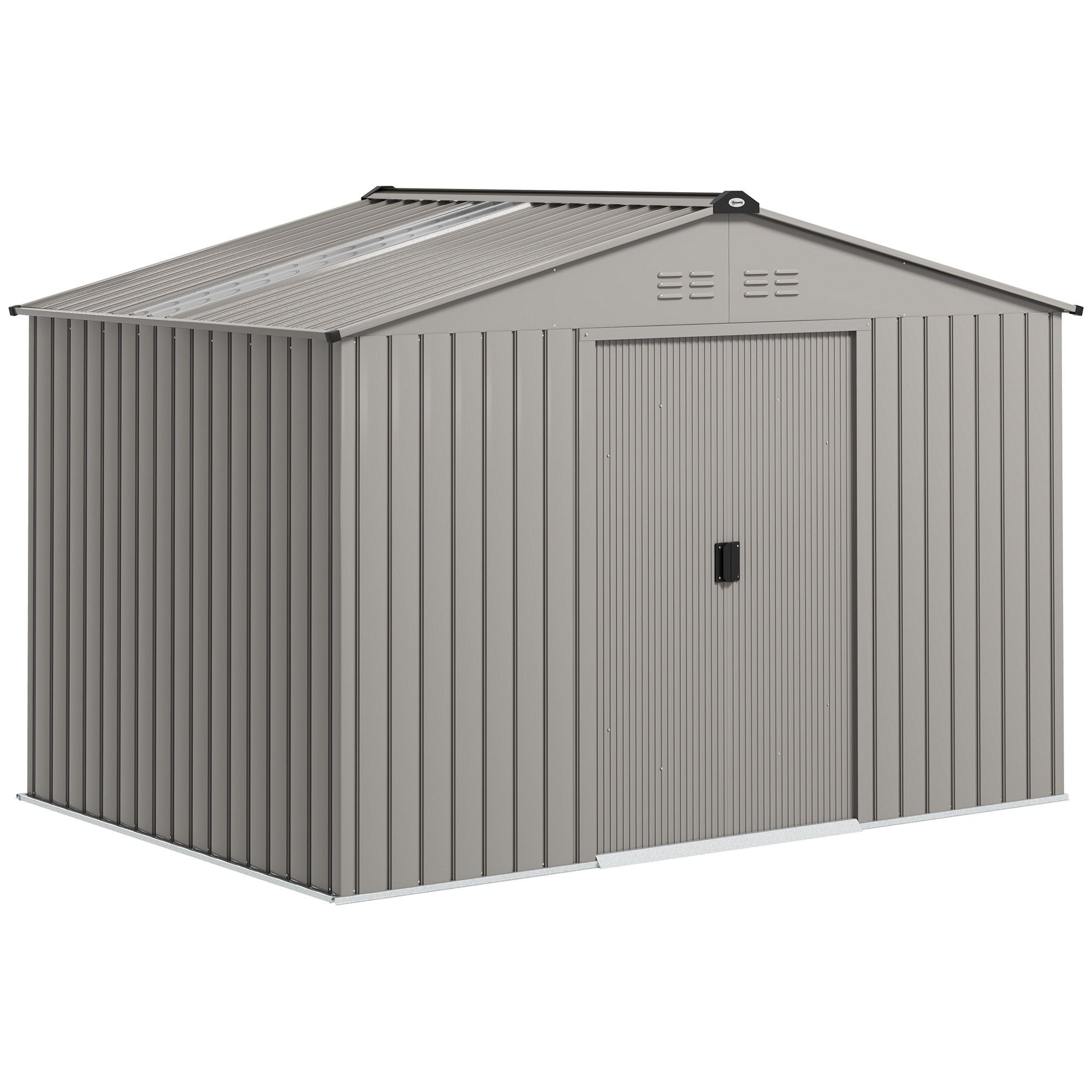 Outsunny 9 X 6ft Garden Storage Shed, Metal Outdoor Storage Shed House With Floor Foundation, Ventilation & Doors, Grey