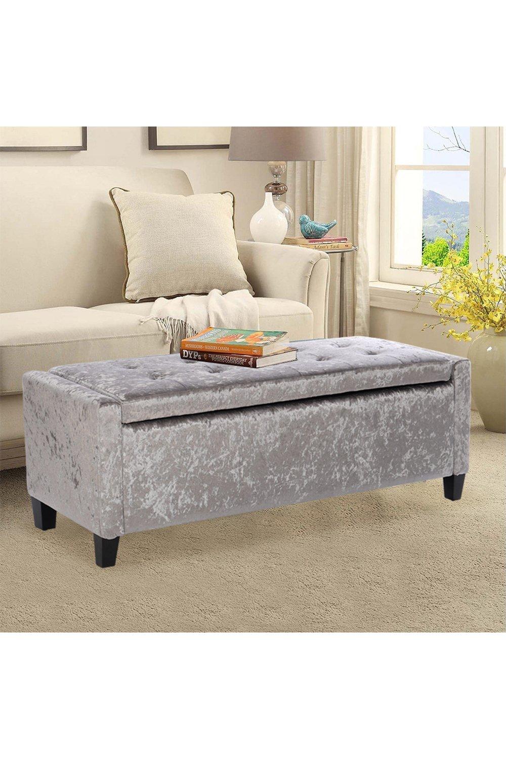 Warmiehomy Ottoman Window Seat Storage Chest Stool Bench Ottoman Storage Bed End Sofa Bench Home Furniture Swan Velvet (Silver)
