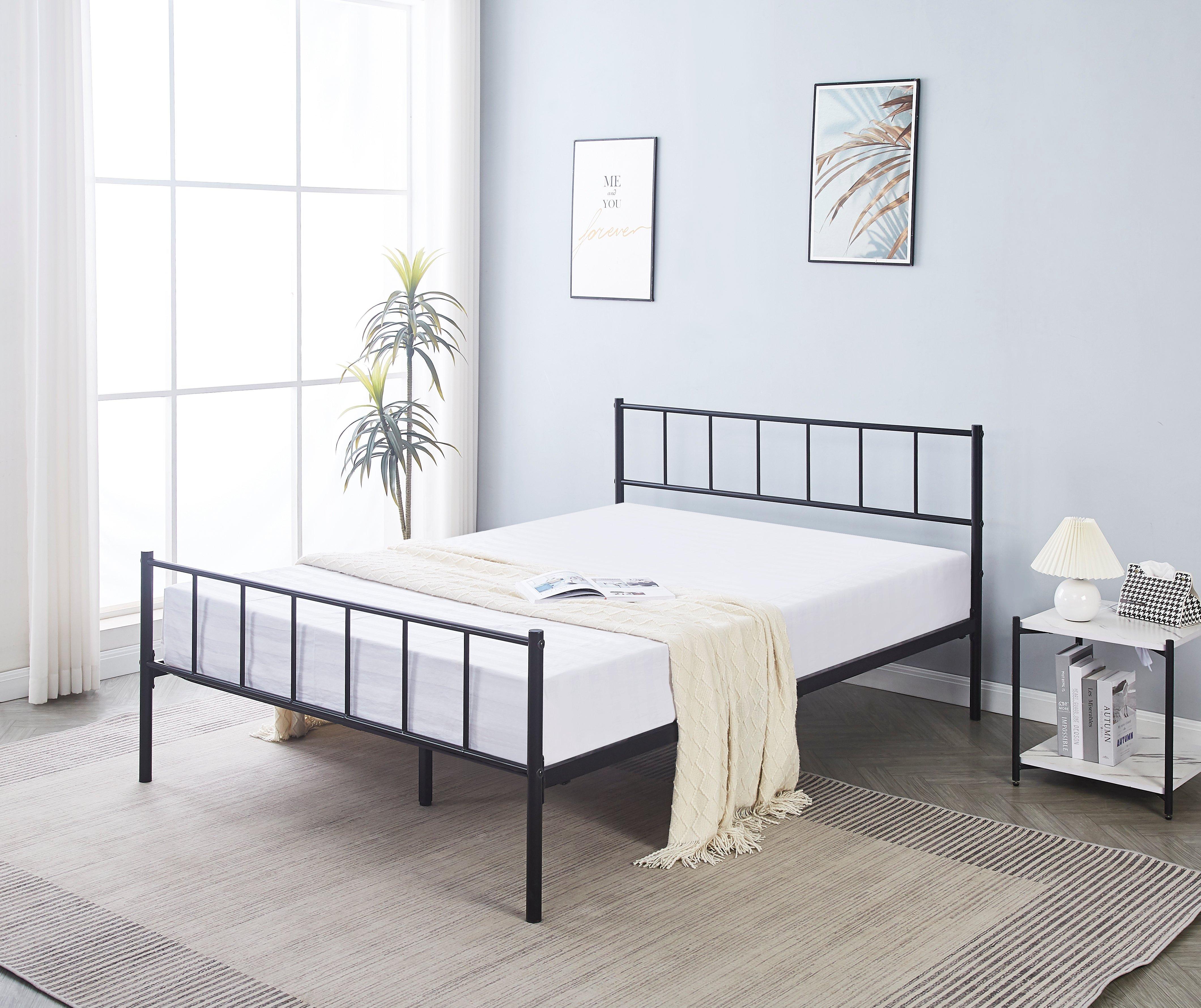 Black Double Metal Bed Frame with High Headboard and Large Storage Space