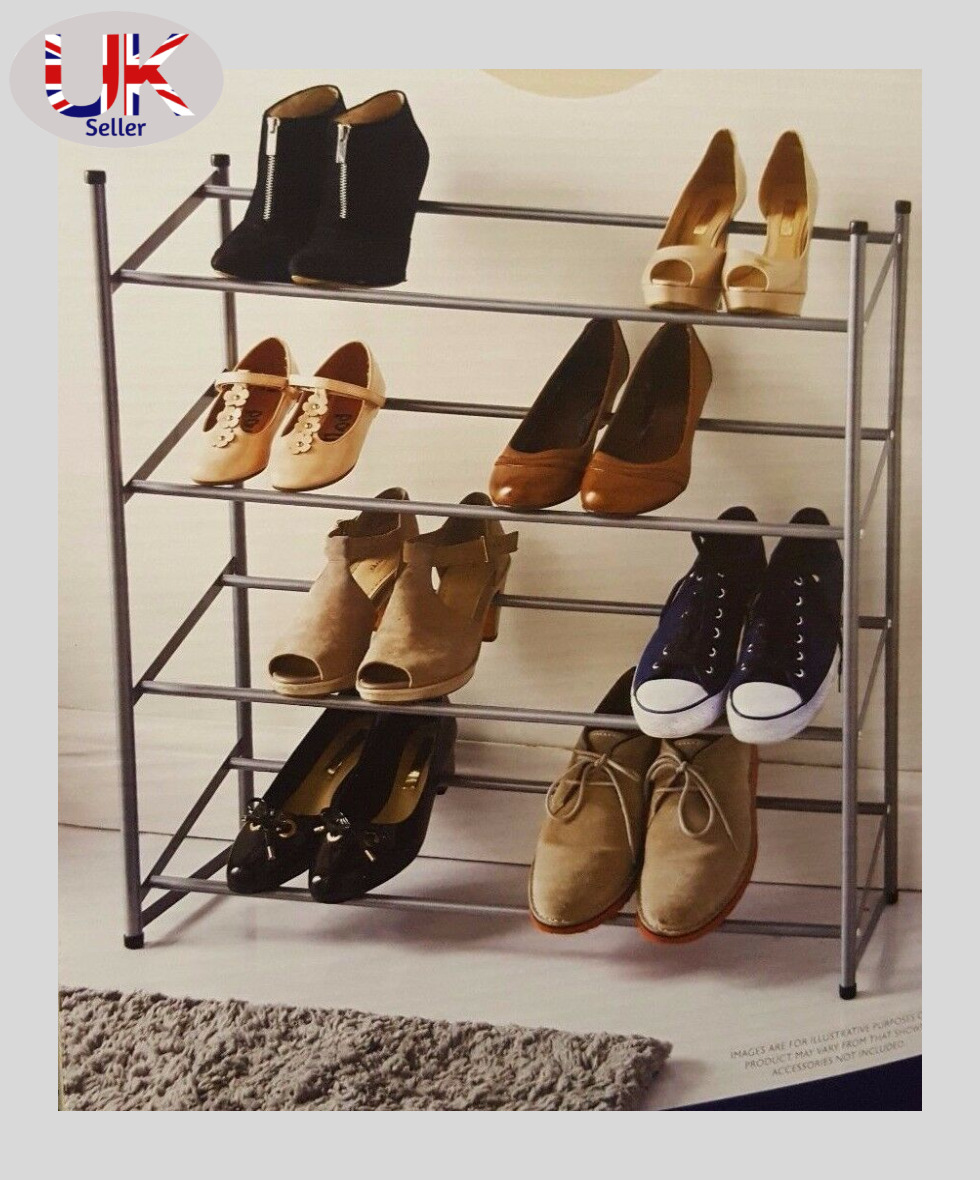 4 Tier Sturdy Metal Shoe Rack Storage Shelf Space Saving Organiser for Home