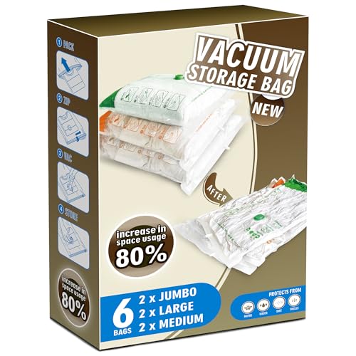 Storage Master Space Saver Bags for Travel and Home Reusable Vacuum Storage Bags Save 80% More Storage Space Work with Vacuum Cleaner, 6 Pack, Mixed Sizes, No Pump