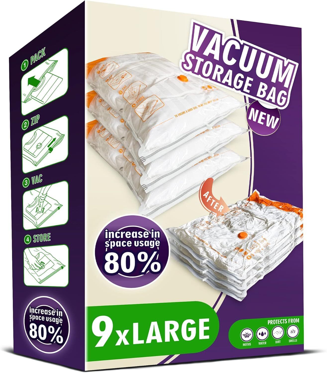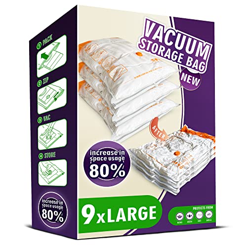 Storage Master Space Saver Bags for Travel and Home Reusable Vacuum Storage Bags Save 80% More Storage Space Work with Vacuum Cleaner (9 Large, No Pump Included)