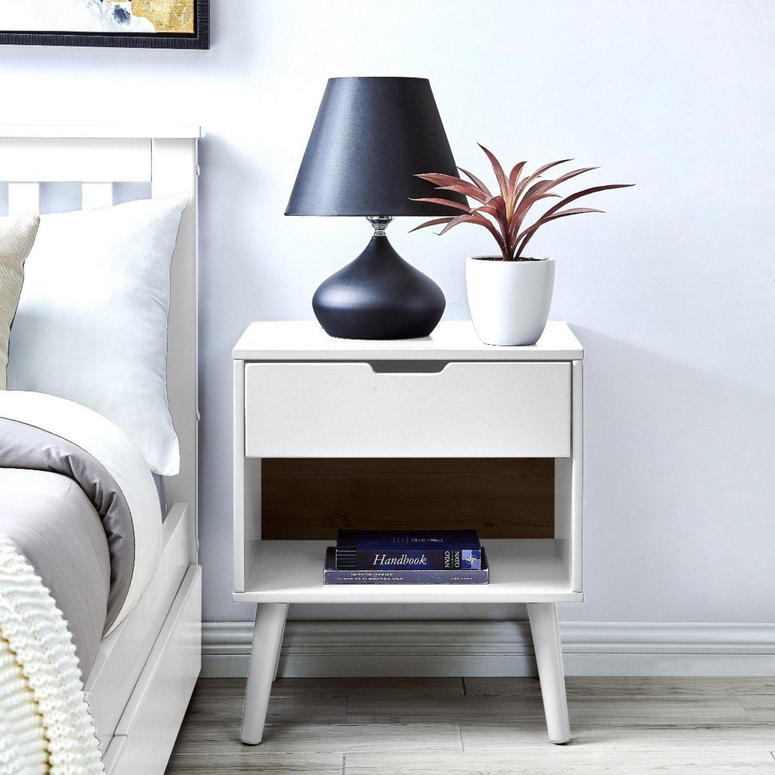 Alma Matte Painted Wooden bedside Table With Single Drawer and Storage Space