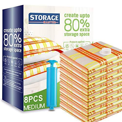 STORAGE MASTER Vacuum Storage Bags, 8-pack Medium Size Space Saver Bags 80% More Storage Space with Hand Pump (Medium 8 Pack)