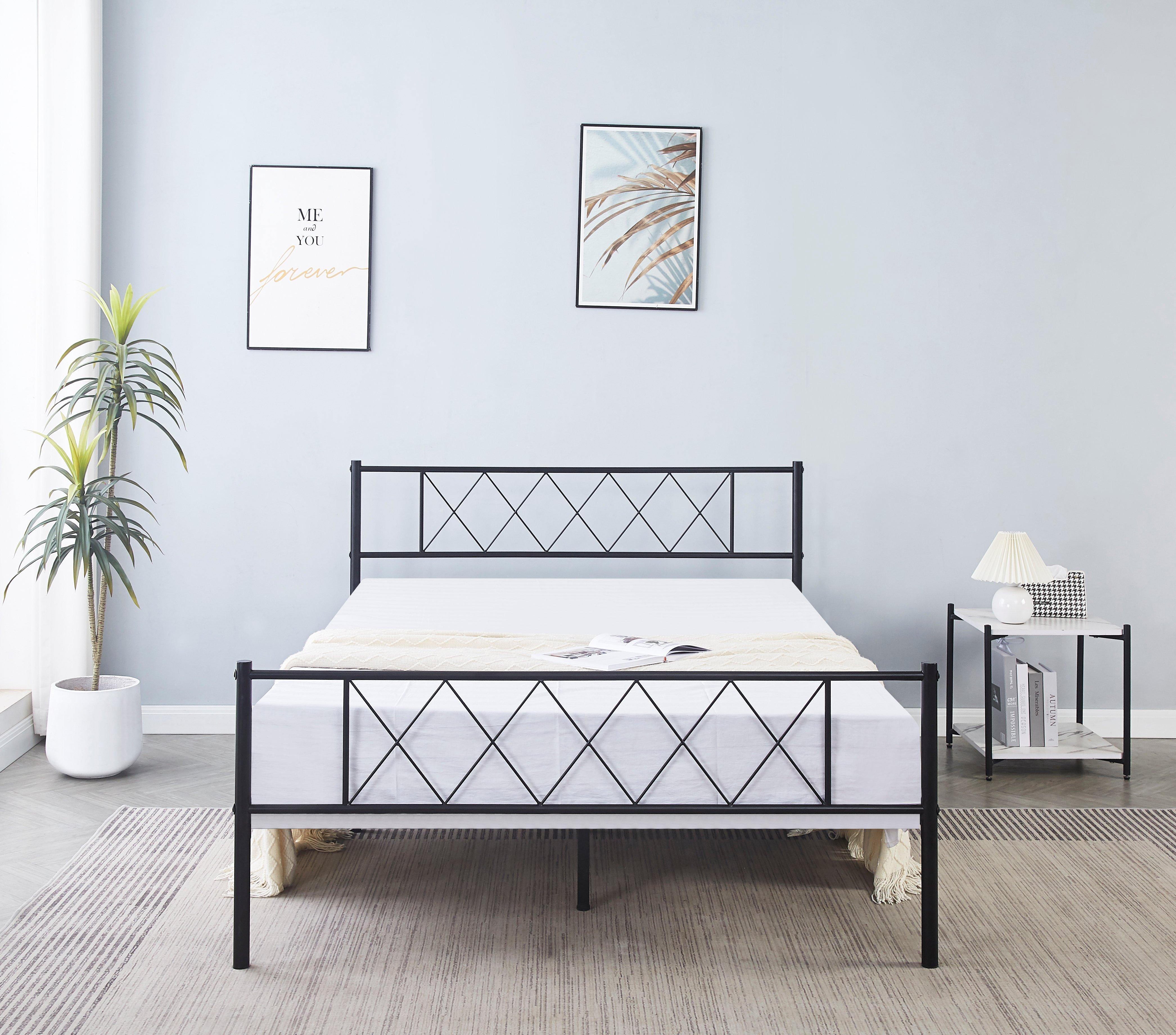 Black Double Metal Cross Bed Frame with High Headboard and Large Storage Space