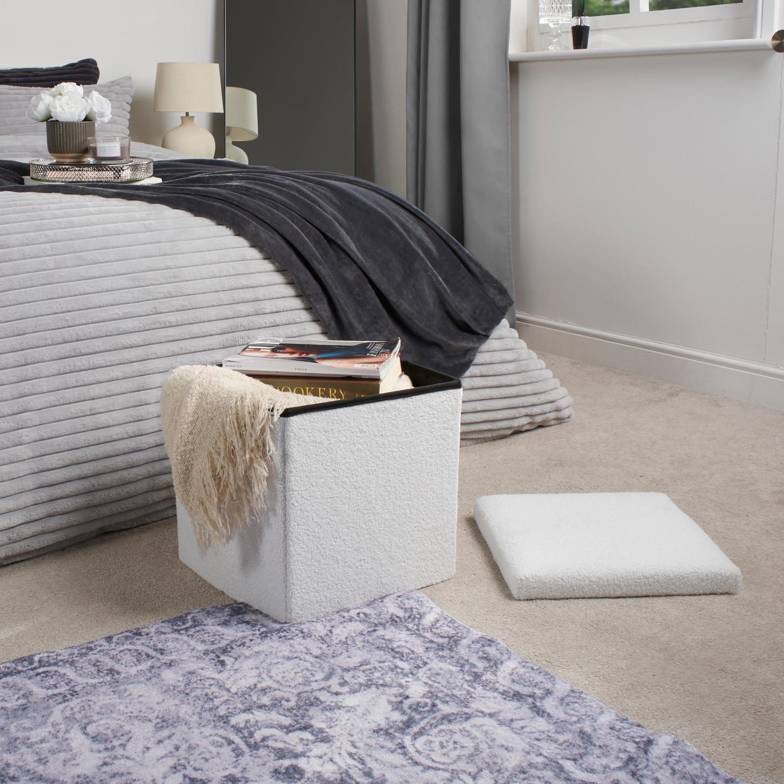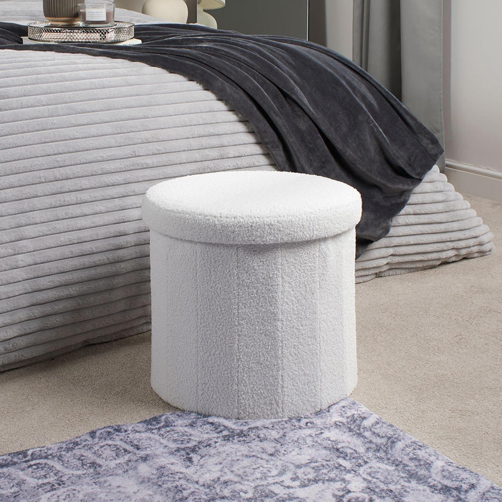 Boucle Folding Ottoman Storage Box Footstool Space Saving Seat