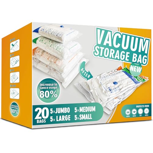 Storage Master Space Saver Bags for Travel and Home Reusable Vacuum Storage Bags Save 80% More Storage Space Work with Vacuum Cleaner (20 Pack, No Hand Pump)