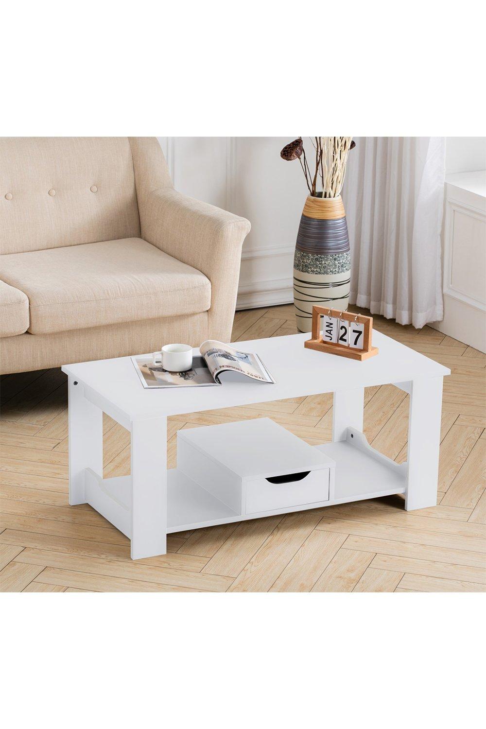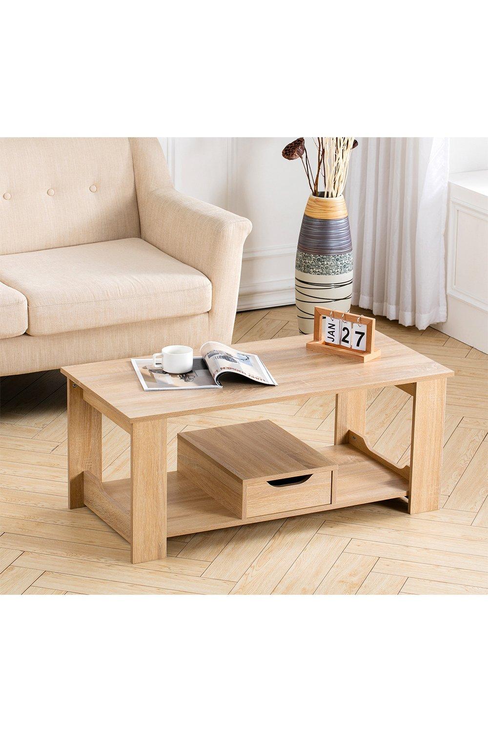 Living Room Coffee Table Storage Sofa Side Tabletop Display Shelf Drawer Unit
