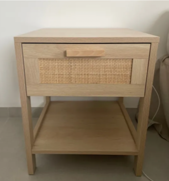 Rustic Bedside Table Storage Cabinet Unit Rattan Drawer Side End Shelf Stand