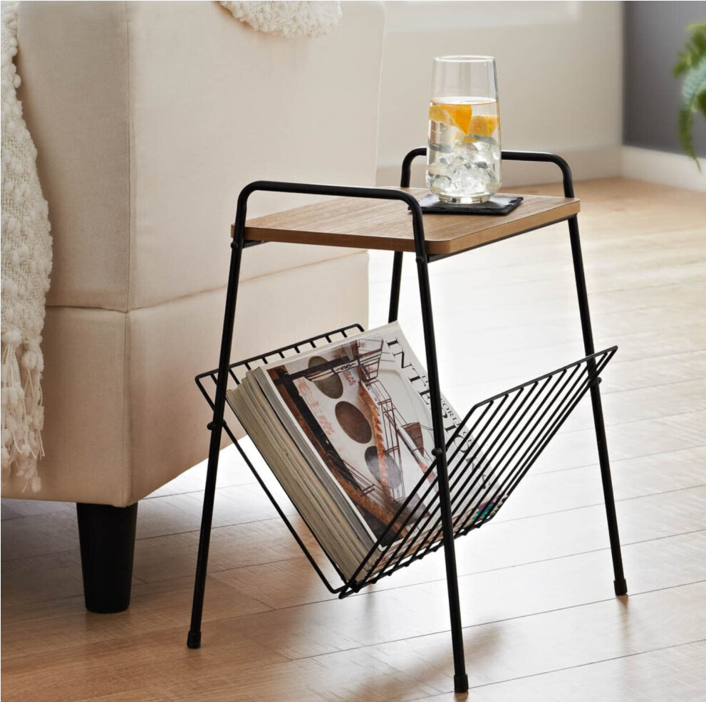 Side Table With Magazine Rack Shelf Wooden Coffee/Lamp/End Storage Stand Table