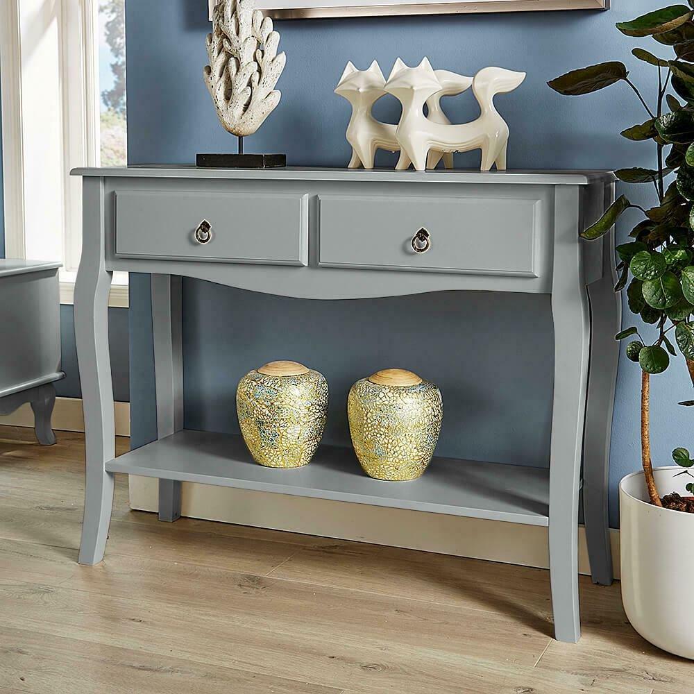 Loxley 2 Drawer Wooden Storage Console Hallway Table Grey