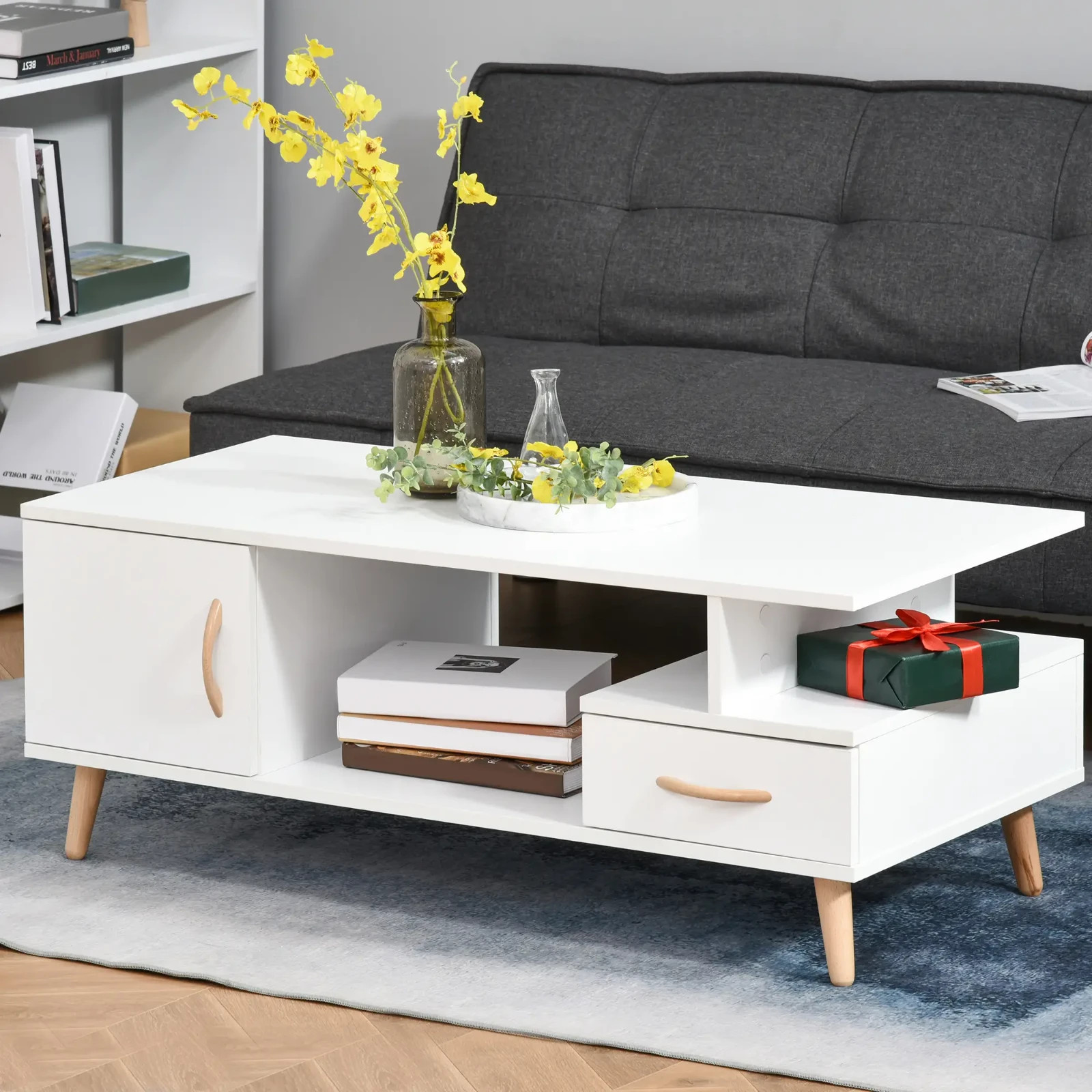 White Wooden Coffee Table with Storage Shelf Tea Table Wood Modern Living Room