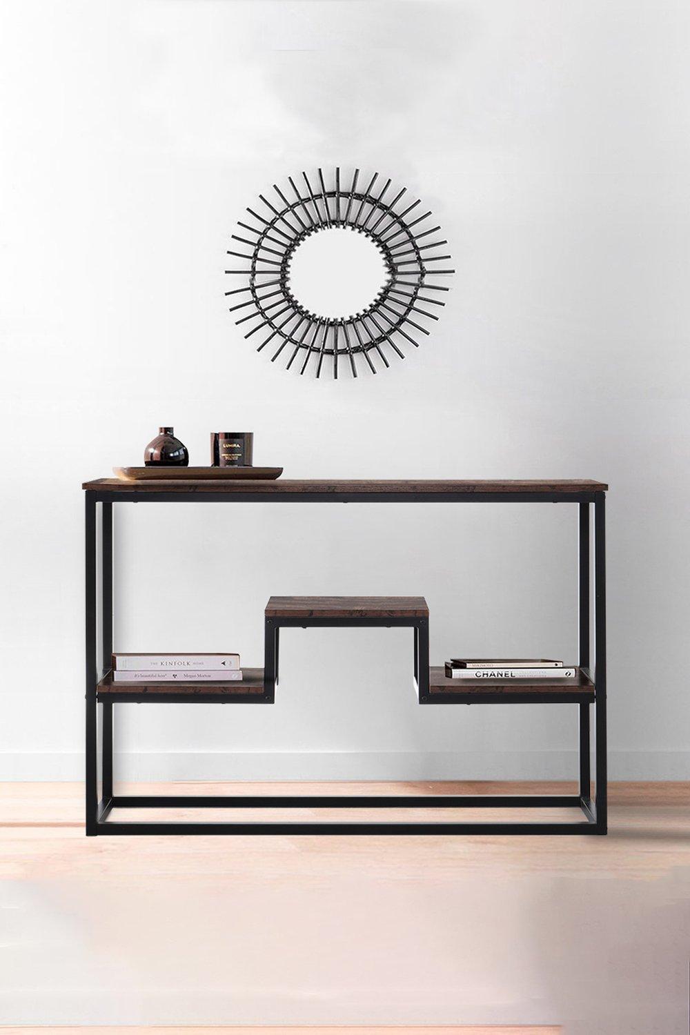 Slim Hallway Console Table Storage Shelves Drawers Black Living Room Sofa Table