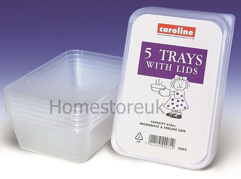 5 PLASTIC TUBS DISH TRAYS CONTAINER WITH LIDS FRIDGE FREEZER STORER STORAGE 2002