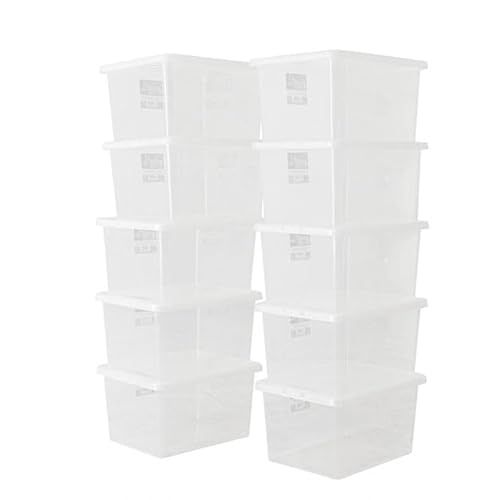 BiGDUG Plastic Storage Boxes – Clear Containers Tubs with Lids for Home or Office Storage (10 x 31 Litre)