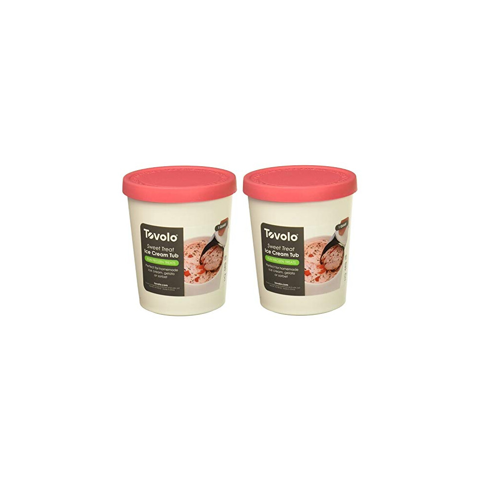 Tovolo Sweet Treat Reusable Ice Cream Container for Homemade Ice Cream Raspberry - 1 Quart Stackable Storage Tubs with Silicone Lids for Freeze