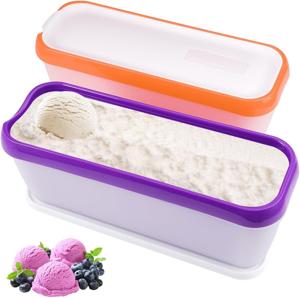 BALCI - Premium Ice Cream Containers (2 Pack - 1 Quart Each) Perfect Freezer Storage Tubs with Lids for Ice Cream Sorbet and Gelato! - Purple
