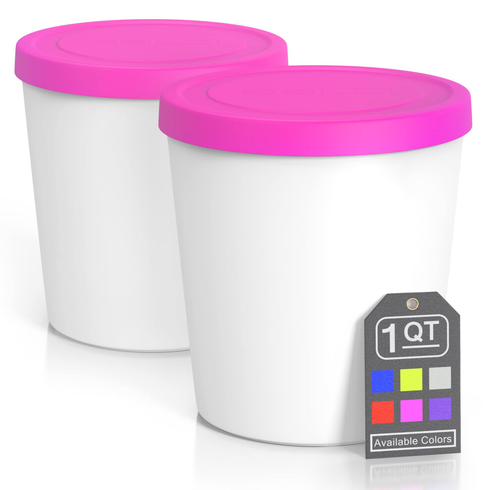 BALCI - Premium Ice Cream Containers (2 Pack - 1 Quart Each) Perfect Freezer Storage Tubs with Lids for Ice Cream Sorbet and Gelato! - Pink