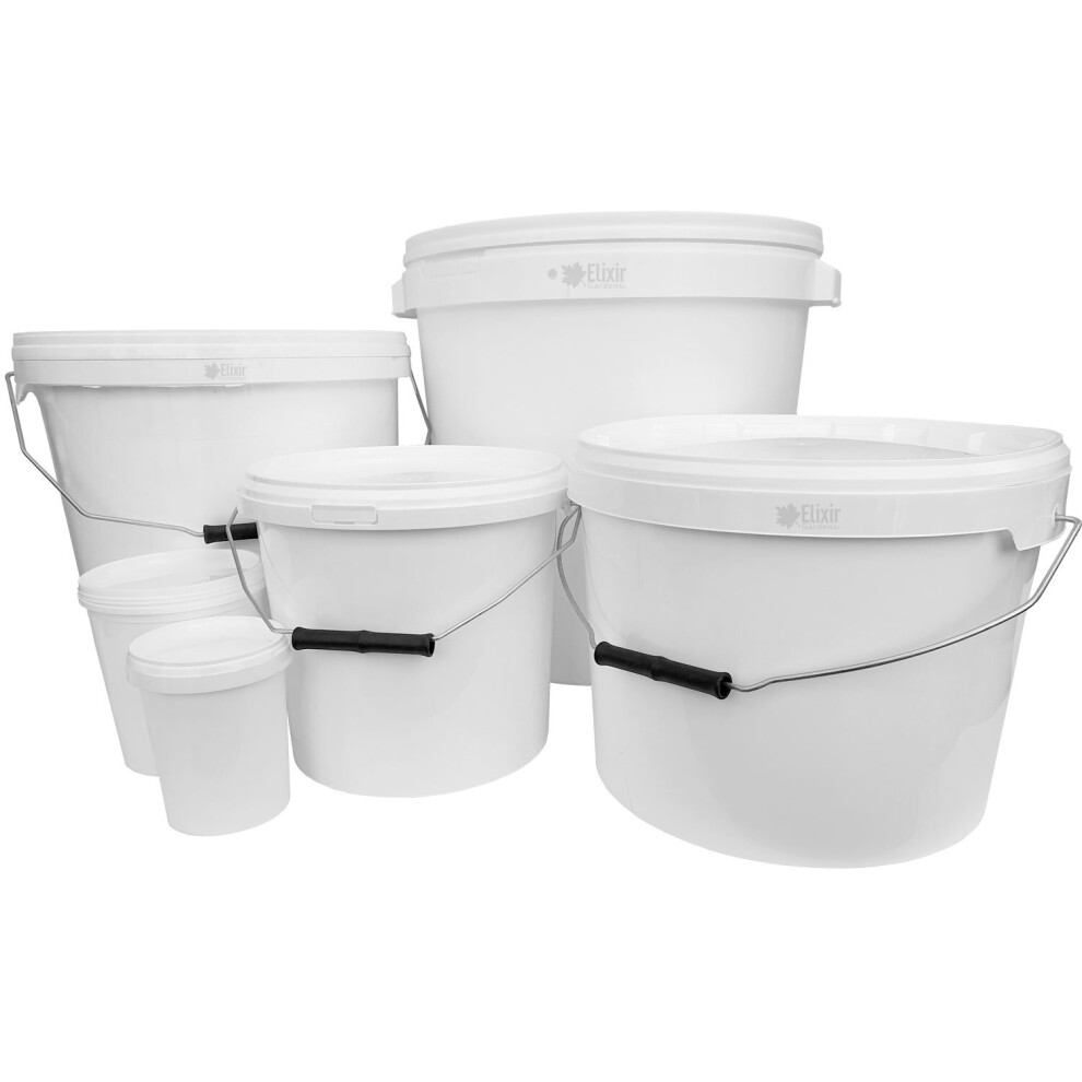 Elixir Gardens Strong Heavy Duty White Multi-Purpose Plastic Storage Containers Tubs Buckets with Lids | Available sizes 0.5, 1, 5, 10, 15, 25, 30