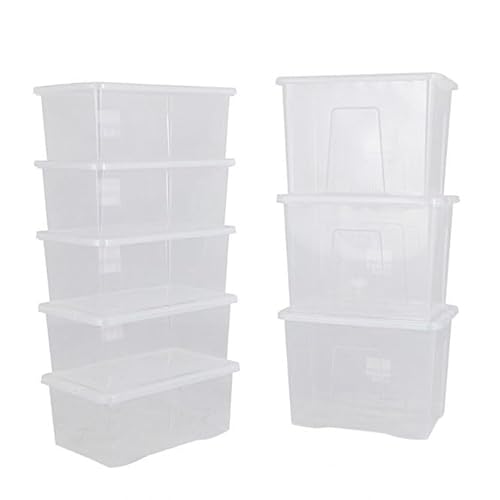 BiGDUG Plastic Storage Boxes – Clear Containers Tubs with Lids for Home or Office Storage (5 x 45 Litre & 3 x 80 Litre)